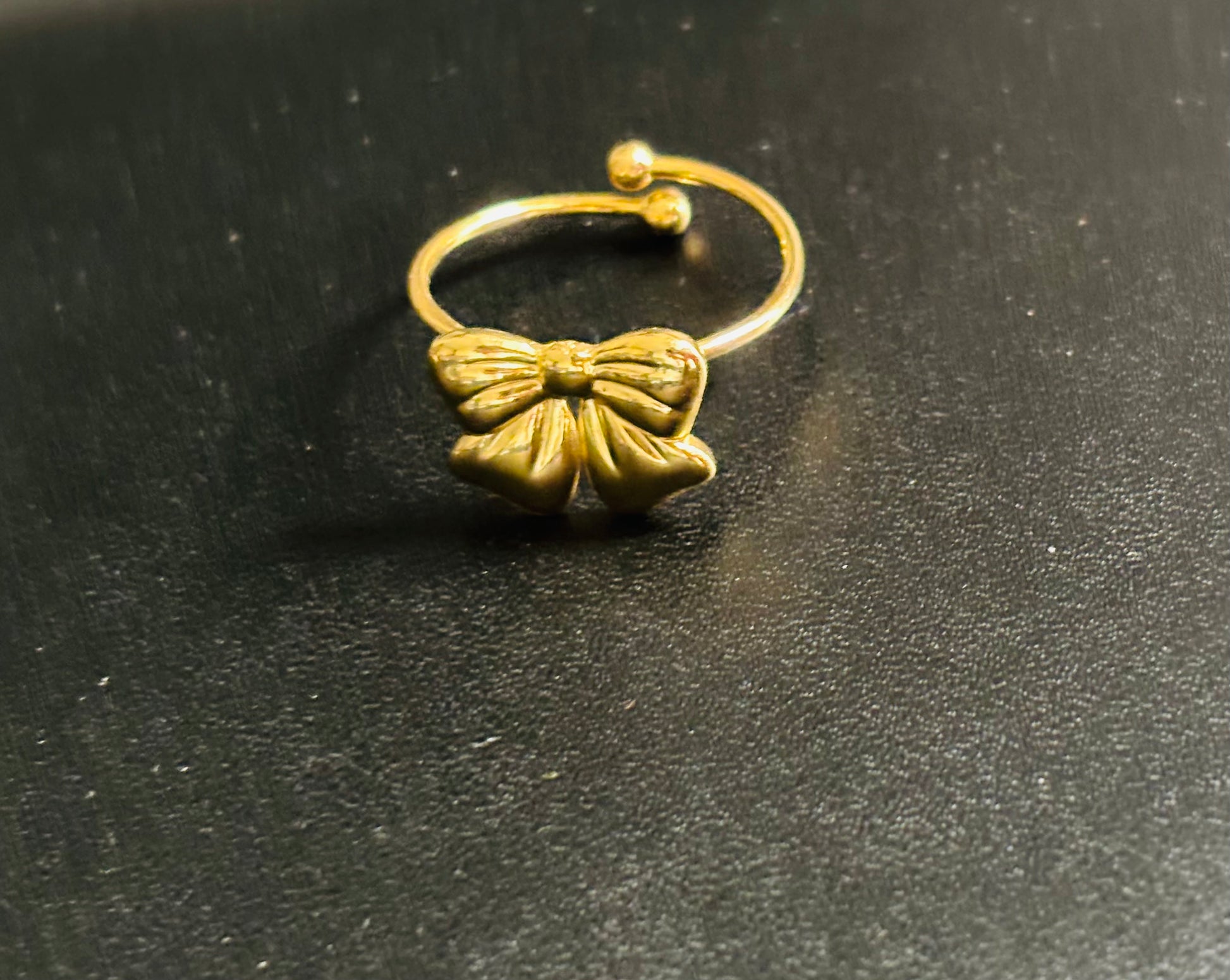 Elegant and timeless, this bow-shaped ring is crafted in 22k gold plating with anti-tarnish and waterproof materials. It’s free size for a perfect fit and comes with a 6-month warranty to ensure lasting shine. A must-have for everyday charm and sophistication! 💖