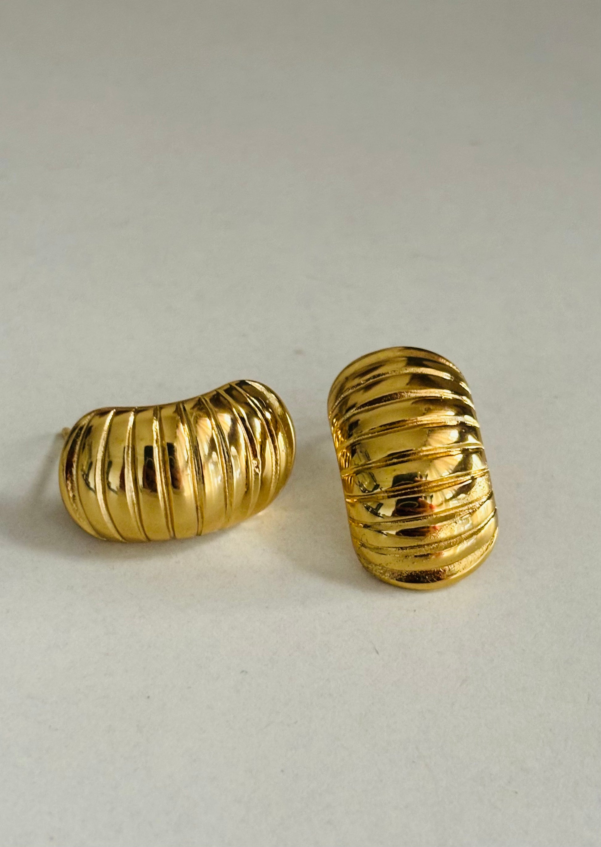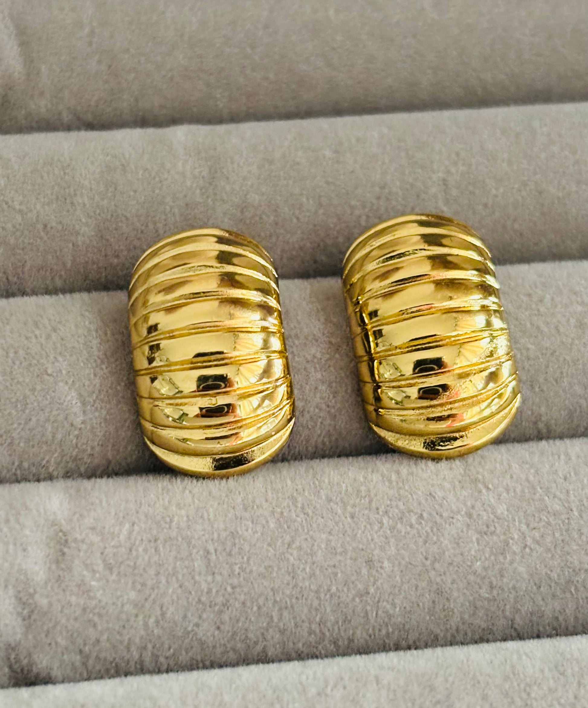 Elevate your look with our Golden Twisted Stud Earrings—a unique design featuring twisted, half-hollow-out stripes with a textured finish. Crafted in 18k gold plating, these earrings combine modern elegance with a bold touch, making them perfect for any occasion. Add a statement of sophistication to your collection with this versatile pair. 💖